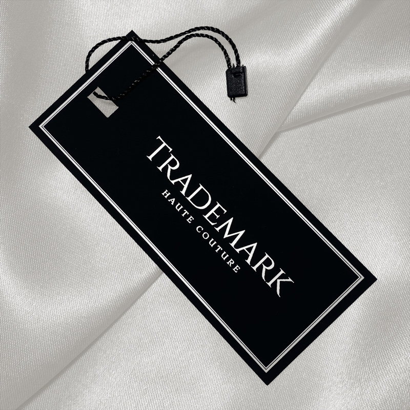 Label for clothing or different types of clothes and shoes, made by laminated cardboard with Soft Touch foil and personalized with silver folio. This type of hang tag is made of high quality materials, using the most advanced technologies in the field of Digital print and finishing.
