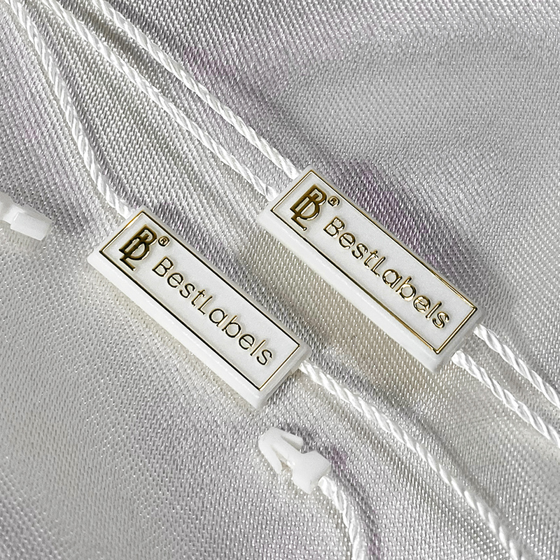 Custom plastic seal tag ST-M142 for fashion products, such as clothes, footwear, bags, jewelry, clothing accessories, etc.