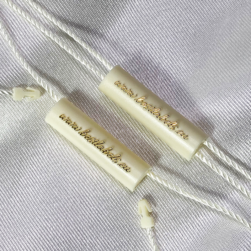 Plastic seal with cylindrical shape ST-M264 and an attractive design and custom text on two sides, suitable for various clothing items such as jeans, pants, ladies and men suits, and many other clothes, shoes and bags. This type of seal is made of high quality materials, using the most advanced technologies in the field.