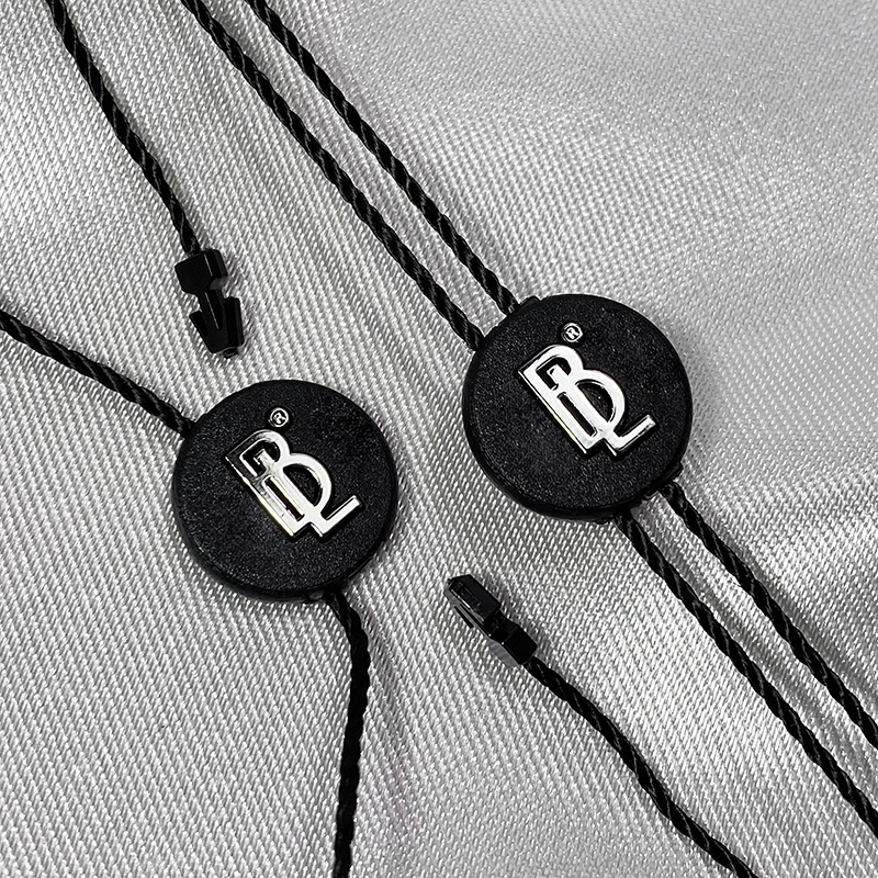Plastic seal ST-M31 with a round shape, very elegant and beautiful customized on two sides with the Brand name or emblem, suitable for clothes, shoes, bags, etc. This type of seal is made of high quality materials, using the most advanced technologies in the field.