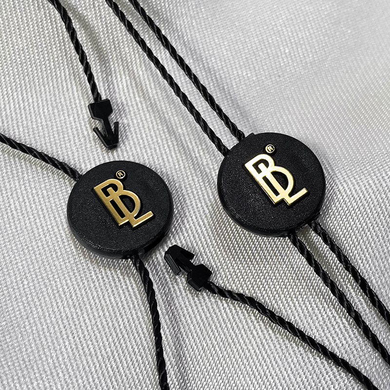 Plastic seal ST-M32 with a round shape, very elegant and beautiful customized on two sides with the Brand name or emblem, suitable for clothes, shoes, bags, etc. This type of seal is made of high quality materials, using the most advanced technologies in the field.