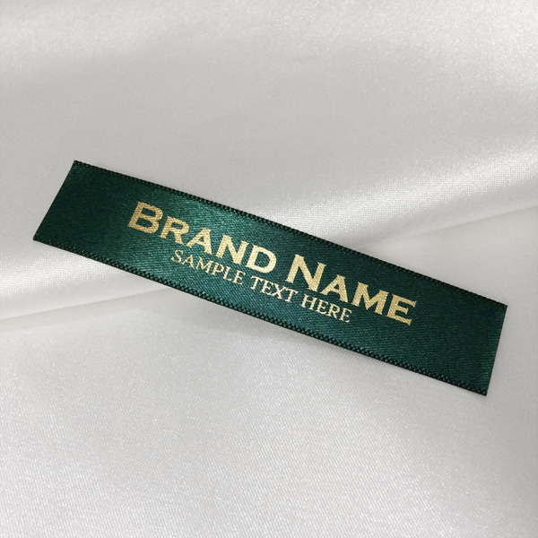 Custom label TL-M13 printed on satin fabric suitable for clothing, clothes accessories, and other textile products.